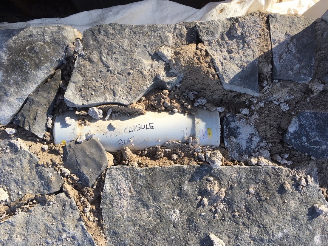 The rebuilt wall was capped with cast-in-place reinforced concrete, and galvanized metal.